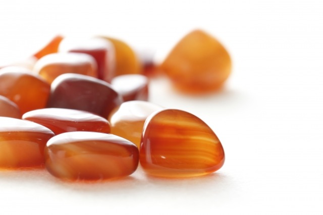 カルセドニーのグループで、半透明で赤みがかったオレンジ色が特徴の石。