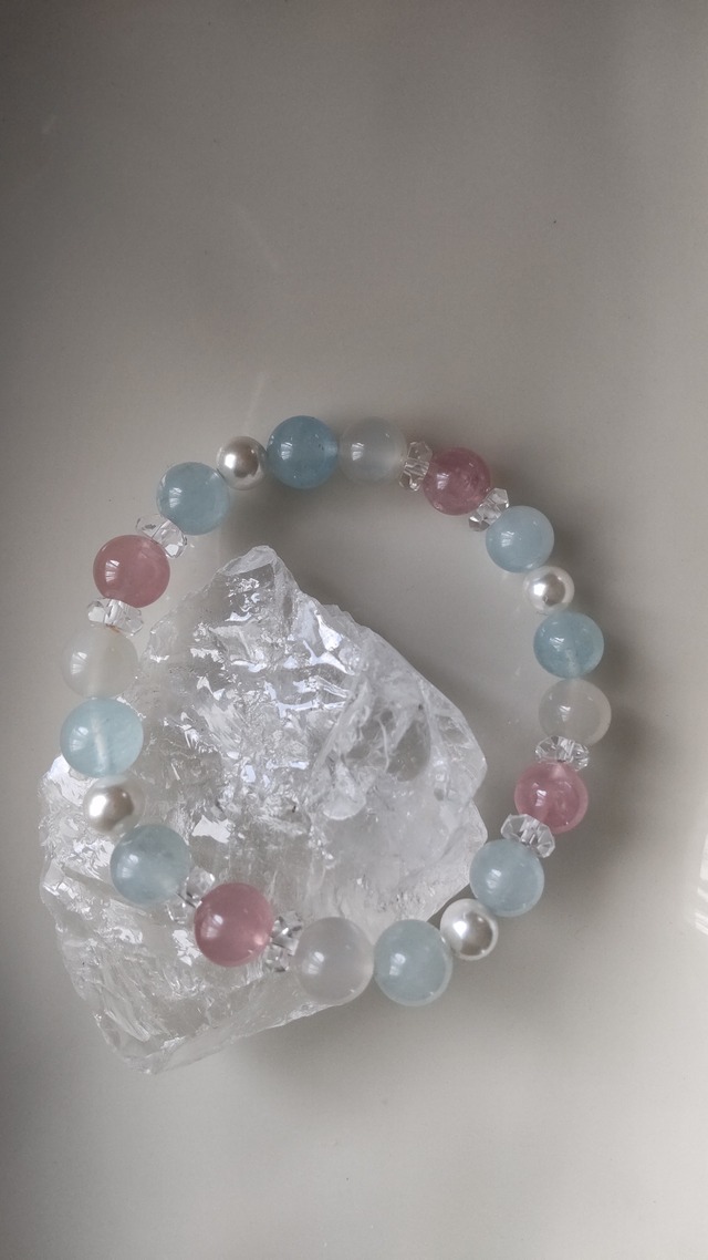 コミュニケーション能力を高め幸せな恋愛を引き寄せてくれるブレス (アクアマリン ローズクウォーツ ムーンストーン 淡水パール クリスタル)