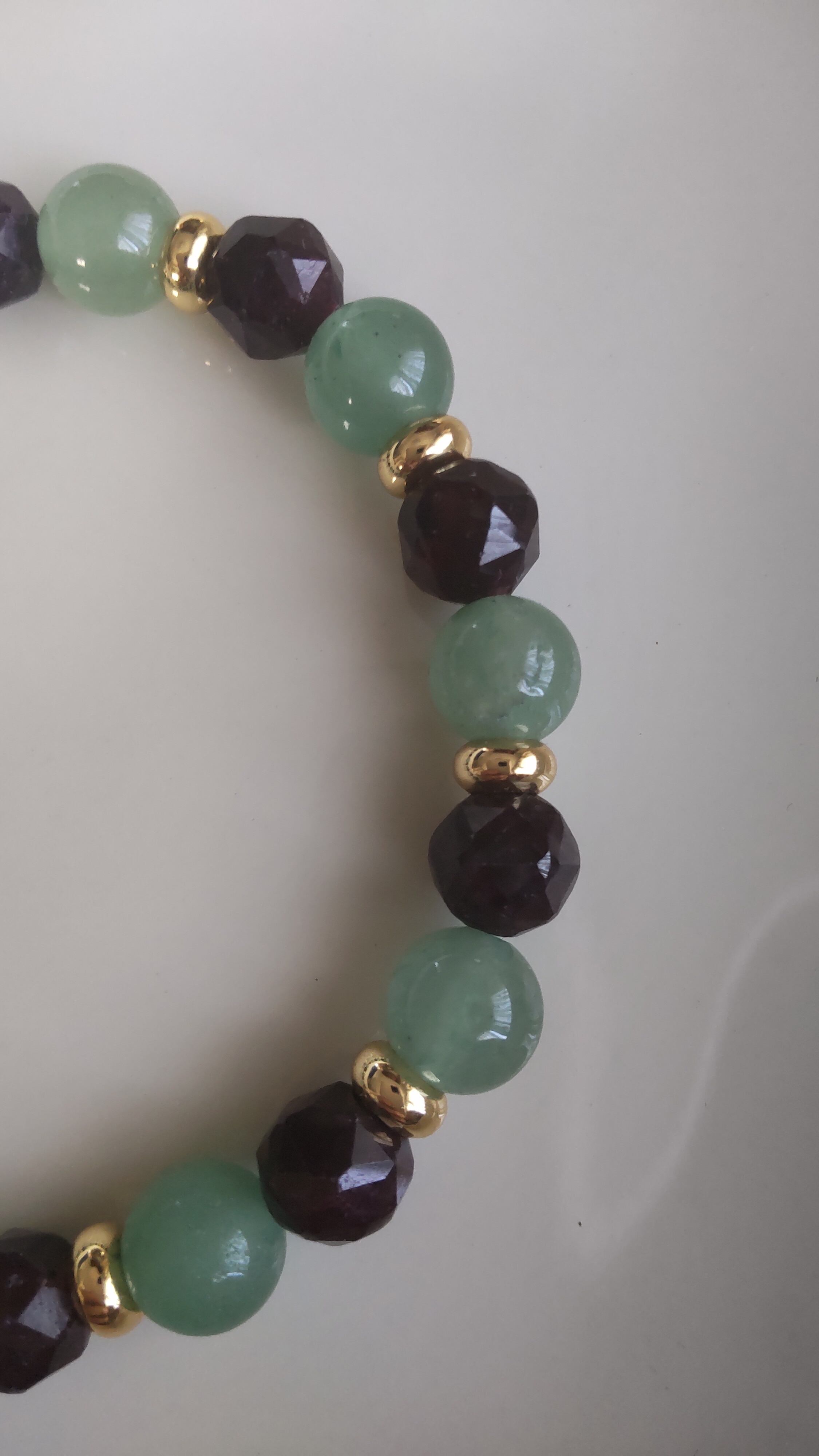 生命力を高め一途な愛と精神と身体の調和を促すガーネット(68面カット)とグリーンアベンチュリンブレスレット