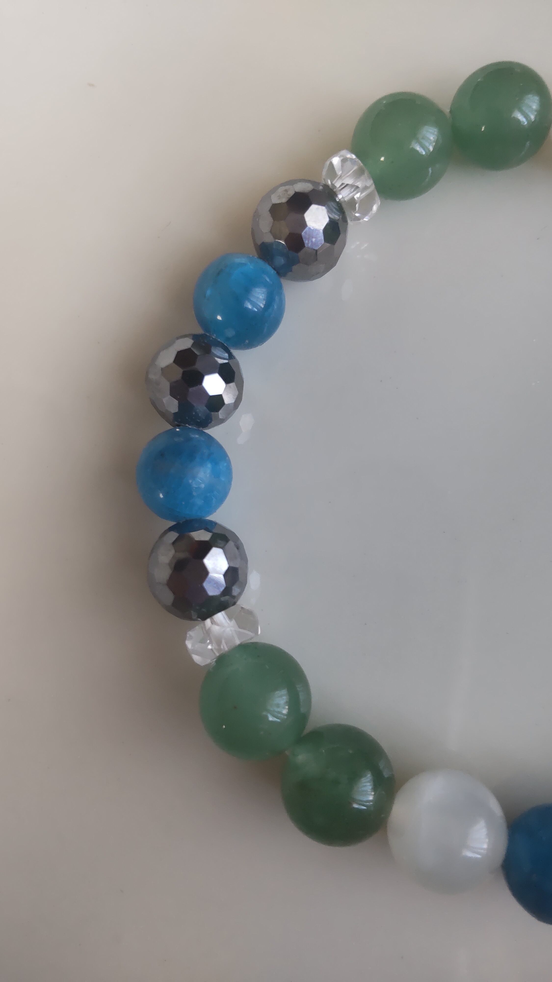 愛情で満たし優しい波動で包み込む心身のバランスを保つブレス。(ブルーアパタイト、ムーンストーン、グリーンアベンチュリン、高純度テラヘルツ、クリスタル)