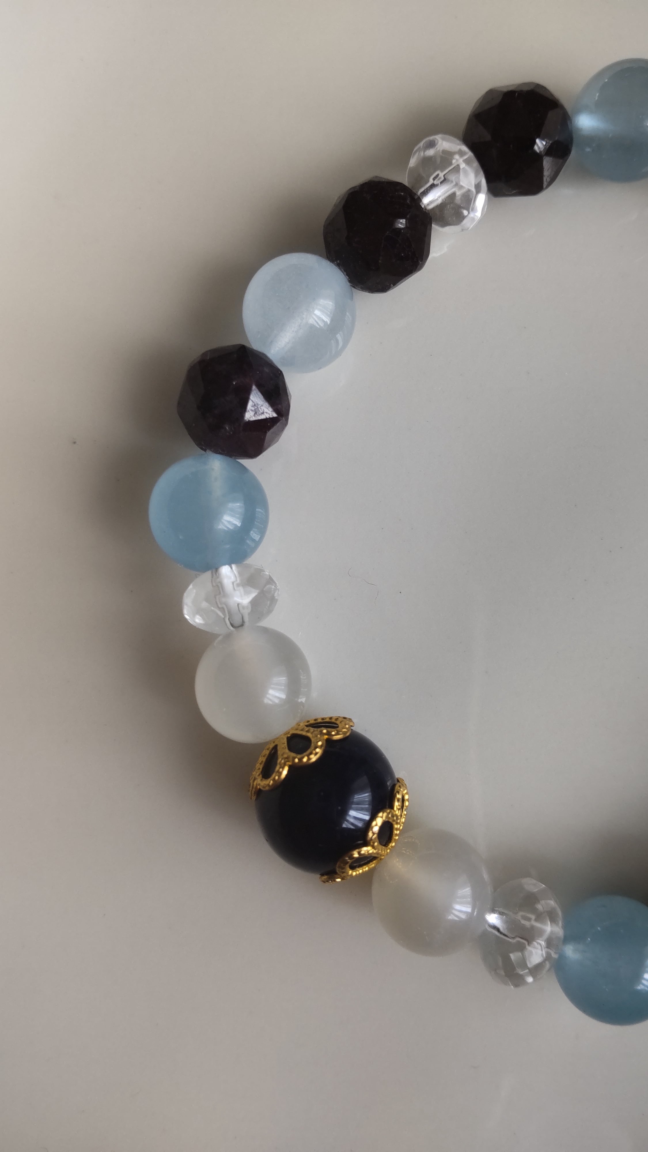 心の余裕をもたらし勇気と希望を与えてくれるブレスレット (ソーダライト、アクアマリン ガーネット ムーンストーン、クリスタル)