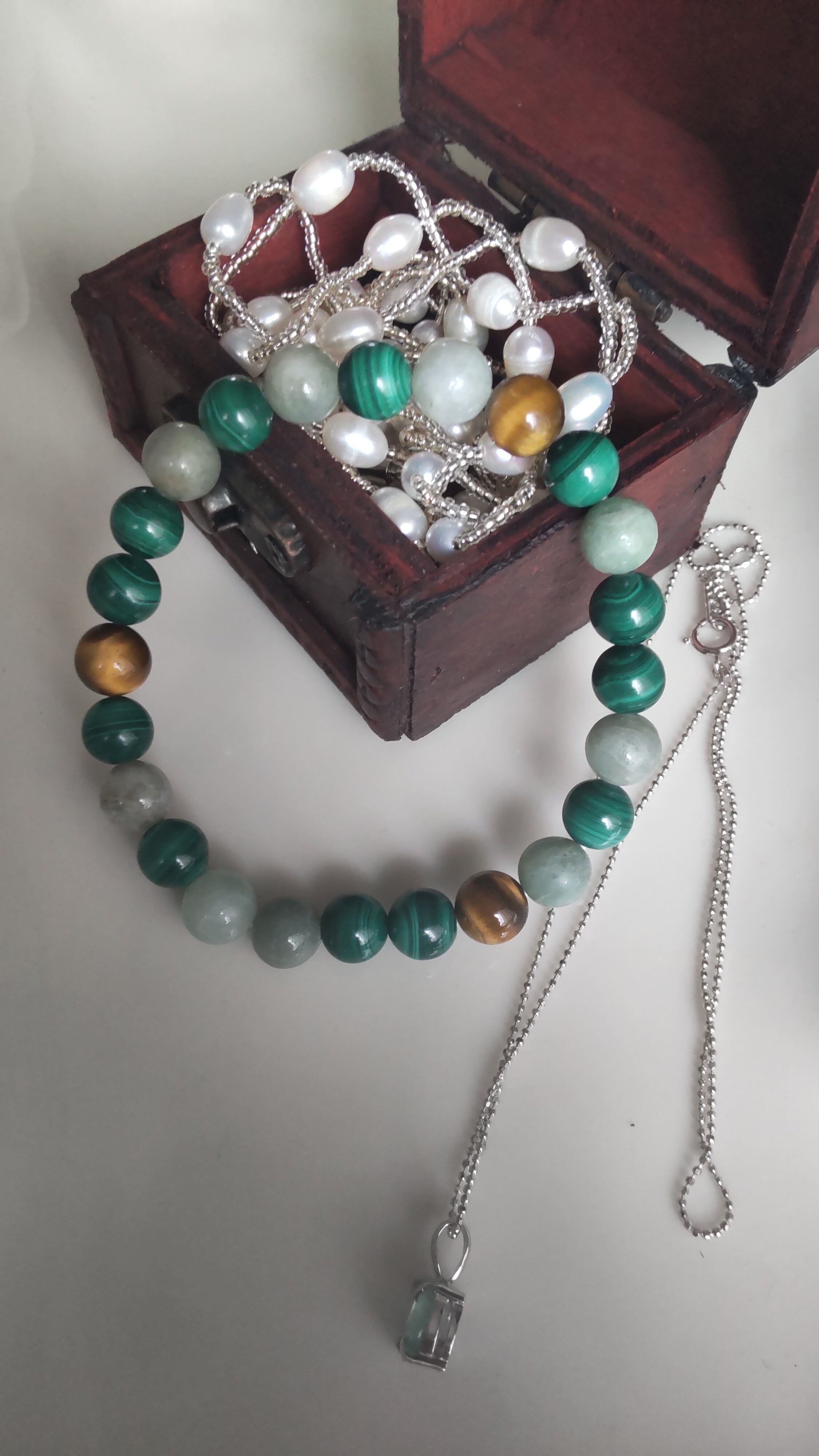 ヒーリング効果で神経をリラックスさせ邪気を払い仕事運を上げるブレスット(マラカイト イエロータイガーアイ 翡翠)